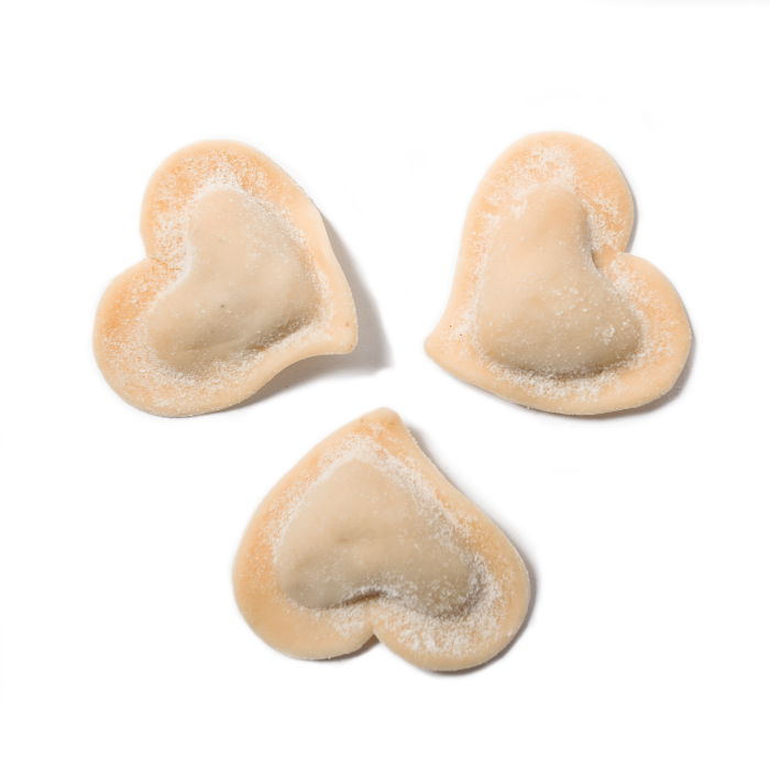 Farce 50% : lait piémontais Toma d’Alta Valle 22% (contient LAIT), ricotta au lait de vache (LACTOSERUM, LAIT, sel), fromages (contient LAIT), pommes de terre déshydratées, fécule de pomme de terre, NOISETTES 8% *uniquement avec “Nocciola Piemonte IGP”, fibres végétales (Bambou, Psyllium), arômes naturels, sel.